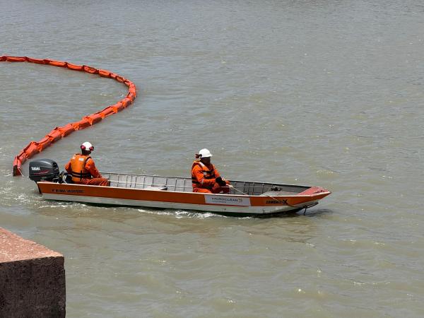 O exercício simulou a colisão de uma embarcação contra a estrutura de concreto do cais, resultando no rompimento do costado e no colapso parcial da sua estrutura, com vazamento contínuo de diesel S10. “Acionamos a cadeia de ajuda interna do Terminal da Granel Química e, em seguida, nossa empresa de resposta ambiental iniciou as ações de contenção. O PACPI e a equipe do contrato de prontidão ambiental da EMAP (OceanPact) também foram mobilizados para apoiar na contenção, instalação de cercos e identificação de manchas de óleo”, destacou o Orlandilson Rodrigues, supervisor de segurança do trabalho da Granel Química.