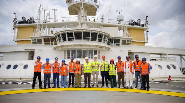 Para impulsionar o setor energético no Maranhão, o Porto do Itaqui recebeu o navio sísmico Ramform Titan, da empresa norueguesa TGS. Considerado um dos mais potentes do mundo em sua categoria, o navio é responsável por realizar pesquisas na Margem Equatorial brasileira, voltadas à identificação de potenciais reservas de petróleo e gás. No Itaqui, o navio foi aberto à visitação institucional nesta quarta-feira, 22/10, e contou com a presença de autoridades do governo do Maranhão, da diretoria do Porto do Itaqui, da GASMAR, da Agência Nacional de Petróleo (ANP) e da TGS, que apresentou o funcionamento da embarcação.